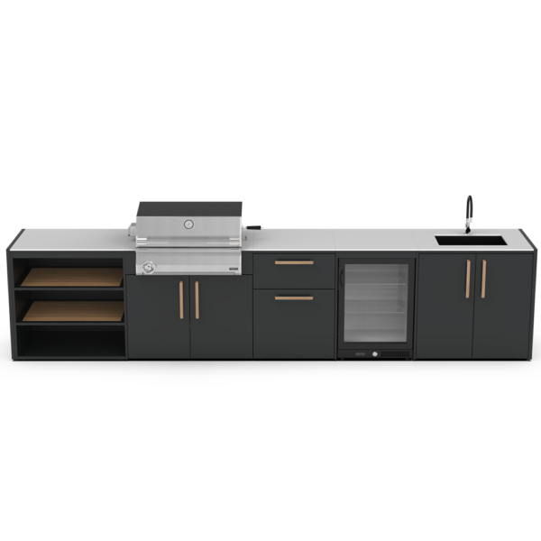 Η εξωτερική κουζίνα KC-C030 της Brabura είναι ένας κορυφαίος σταθμός μαγειρικής σε σχήμα "Π", που προσφέρει μέγιστη επιφάνεια εργασίας και ασύγκριτη λειτουργικότητα. Με τον συνδυασμό του Neolith και του γαλβανισμένου χάλυβα, αποτελεί μια ανθεκτική και καλαίσθητη λύση για τη δημιουργία ενός πλήρως εξοπλισμένου γαστρονομικού κέντρου με Minimal design στον κήπο ή τη βεράντα σας.