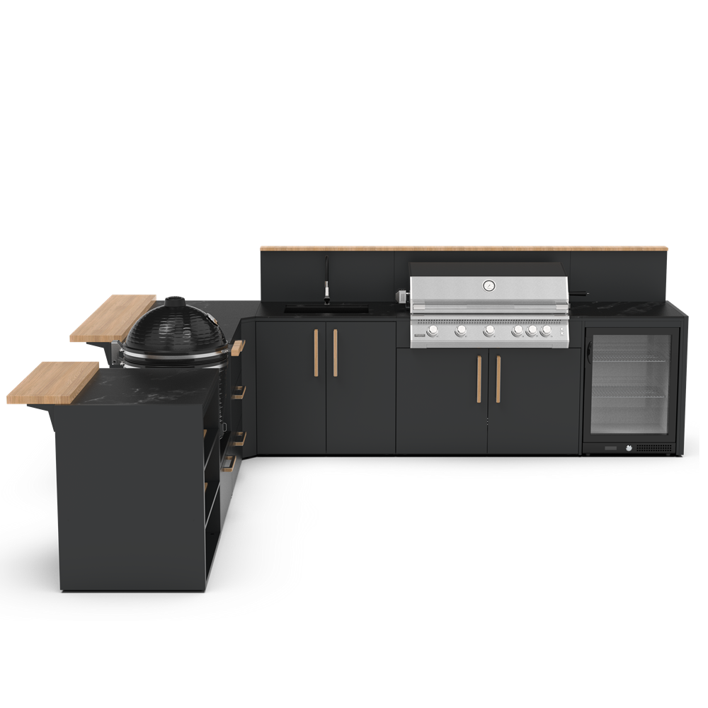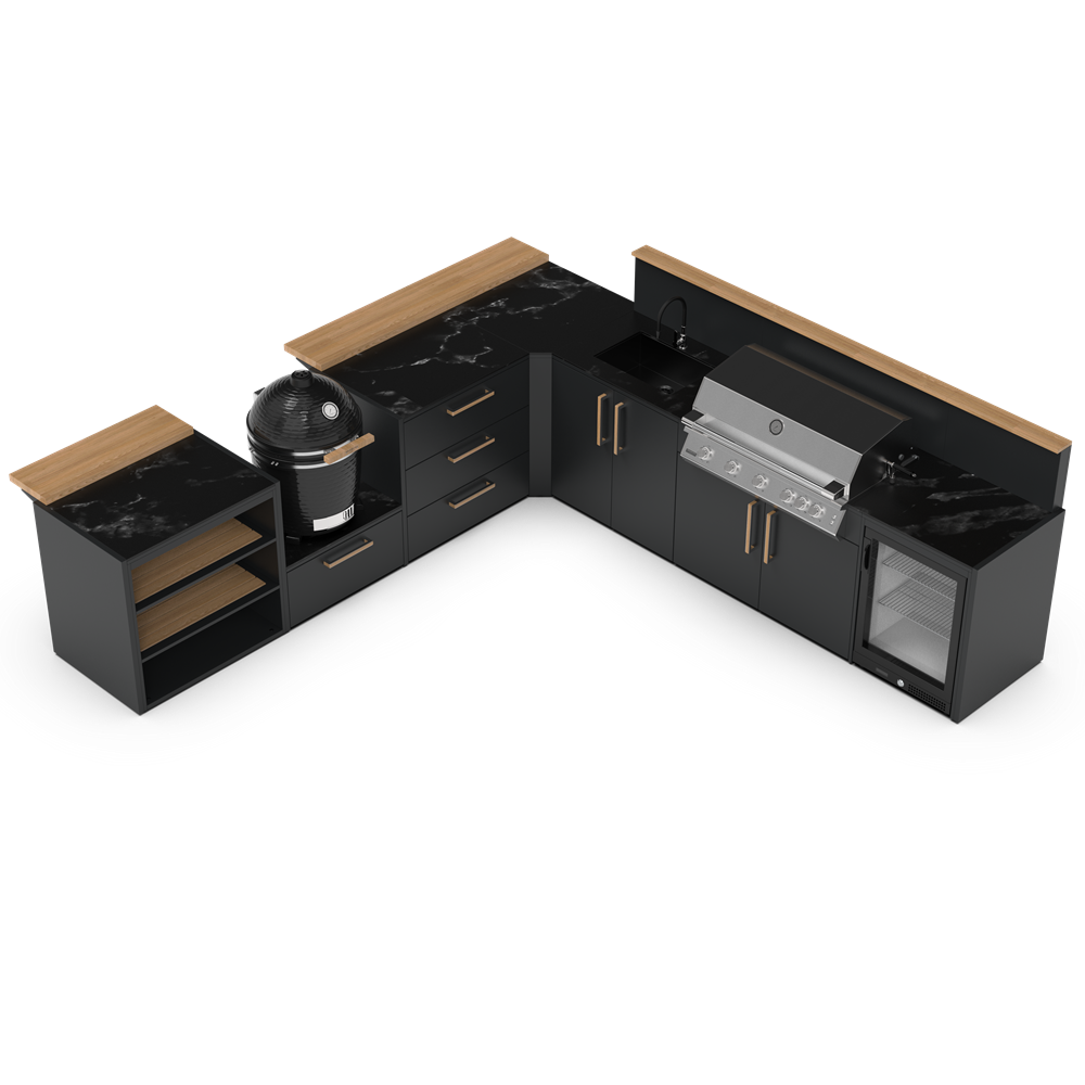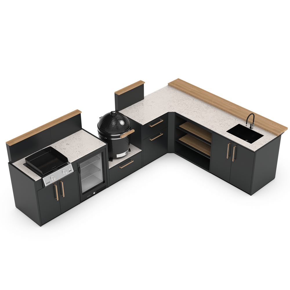 Η εξωτερική κουζίνα KC-C005 της Brabura αποτελεί μια εξαιρετικά ευέλικτη και λειτουργική πρόταση, σχεδιασμένη για να προσφέρει έναν πλήρη σταθμό μαγειρικής σε πιο compact διαστάσεις. Συνδυάζοντας την ασύγκριτη αντοχή του Neolith με τον κομψό σχεδιασμό, είναι η ιδανική λύση για τη δημιουργία μιας επαγγελματικής γωνιάς ψησίματος που προσαρμόζεται απόλυτα στον δικό σας χώρο.