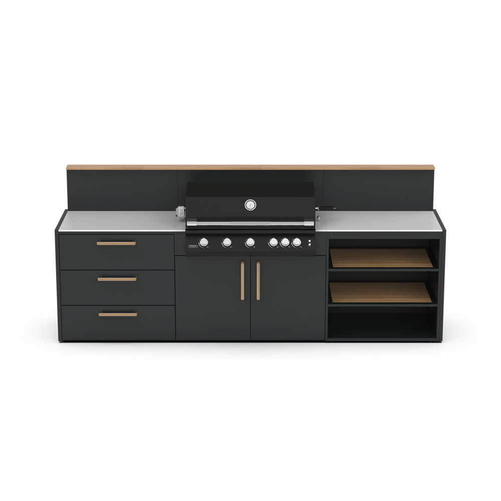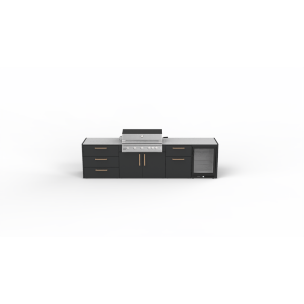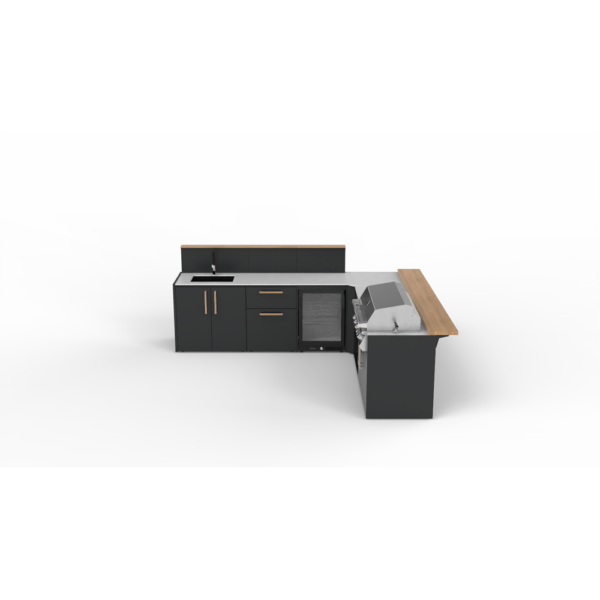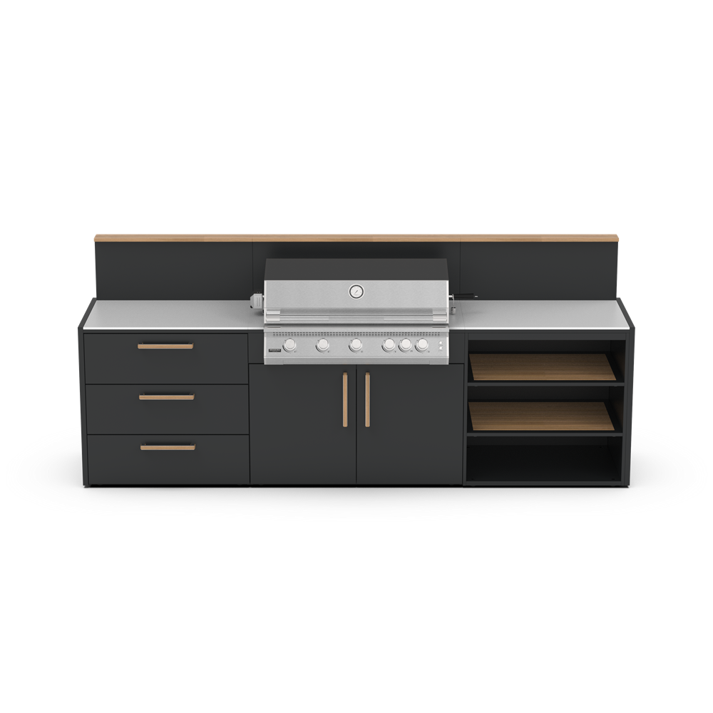 Η Brabura KC-C013 αποτελεί μια ολοκληρωμένη πρόταση εξωτερικής κουζίνας που συνδυάζει την αισθητική υπεροχή με την απόλυτη λειτουργικότητα. Ο πάγκος από Sintered Stone Neolith προσφέρει μια επιφάνεια ασύγκριτης αντοχής, η οποία παραμένει ανεπηρέαστη από γρατζουνιές, λεκέδες και ακραίες θερμικές μεταβολές, εξασφαλίζοντας παράλληλα ένα απόλυτα υγιεινό περιβάλλον για την προετοιμασία των γευμάτων σας.